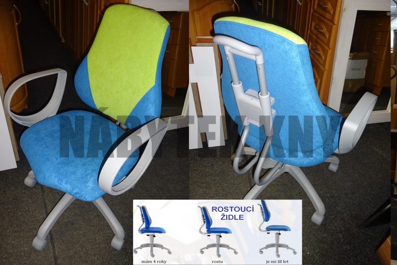 dětské barevné židle, výškově nastavitelné, zestílený plastový kříž, kolečka na koberec, síťovaný prodyšný opěrák, nosnost do 80Kg, skladem, původní cena 1.890Kč