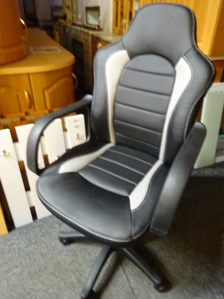 Barva bílo černá, eko kůže, výškově nastavitelná, houpací mechanismus, do 100kg, II. jakosti, dovoz Německo