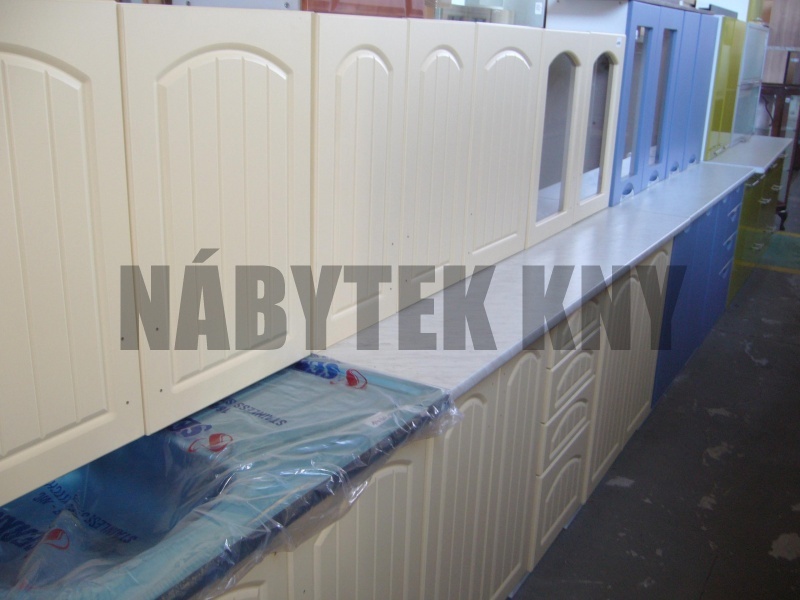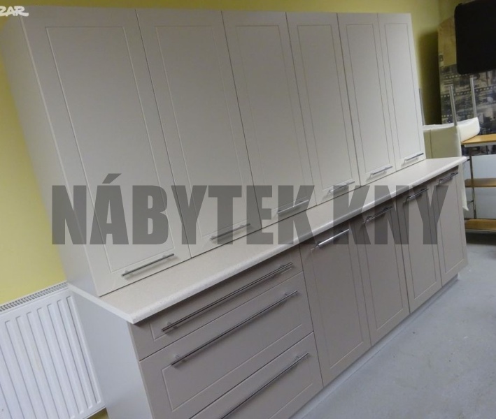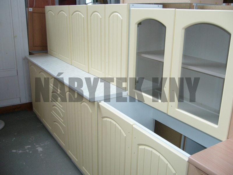 240cm, barva vanilka, dvířkovina MDF, frez F31 výška horních skříněk 60cm, frez M35, výška spodních skříněk 85cm s pracovní deskou, v ceně není pracovní deska. kuchyně je v demontu, v balíku, kuchyně je na objednání