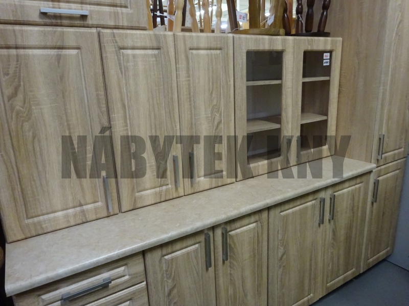 240cm, barva dub, dvířkovina MDF, frez F25, kuchyně K47 + komín K132 kuchyně dodáváme v sestaveném stavu s deskou 180cm, prodáno
