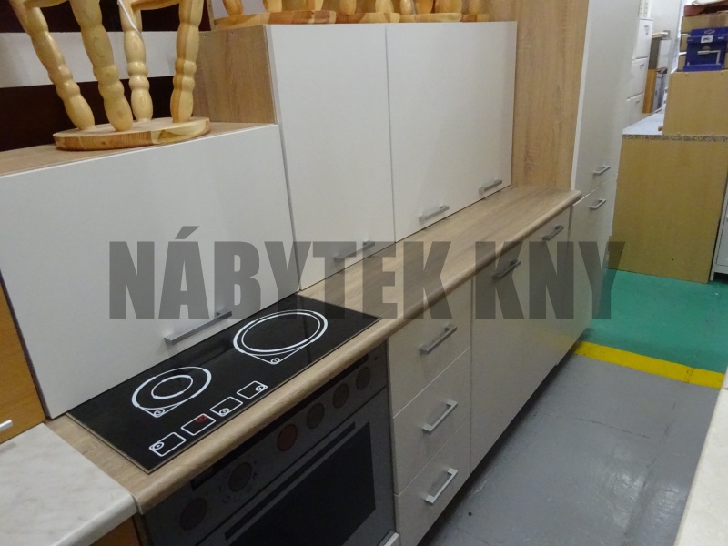 240cm, v ceně je pracovní deska 180cm, v ceně nejsou spotřebiče, zprava: 60potravinka + 80dřezová + 40šuplíky + 60sporáková, kuchyně je v demontu, v balíku, vyprodaná