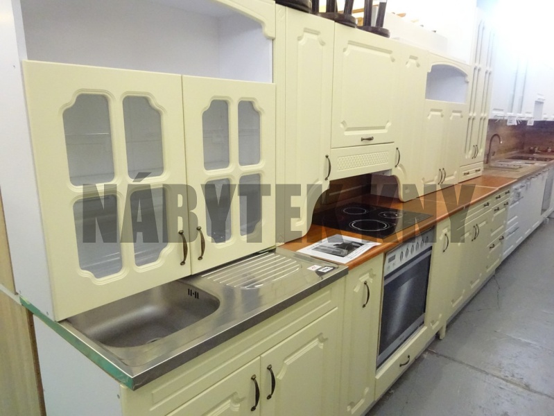 délka 350cm, barva vanilka, dvířkovina MDF, ceně kuchyně není prac.deska vkuse, v ceně nejsou spotřebiče a není dřez, kuchyně je v sestaveném stavu, skladem hned