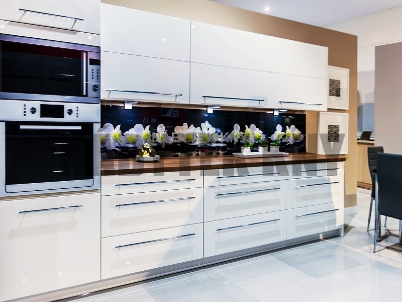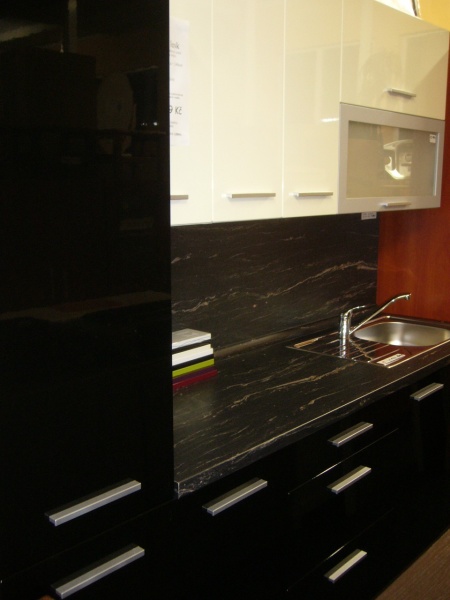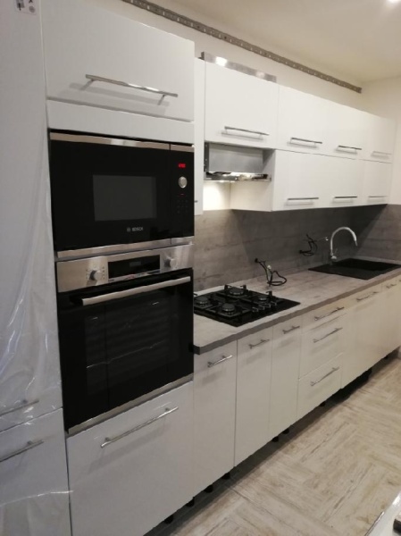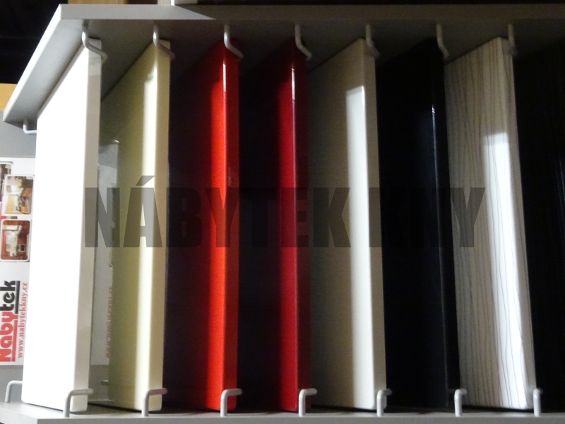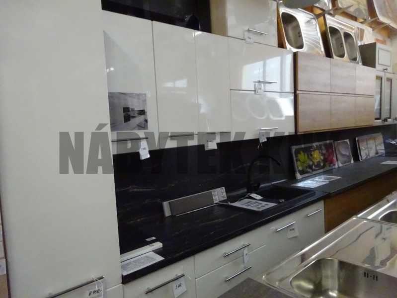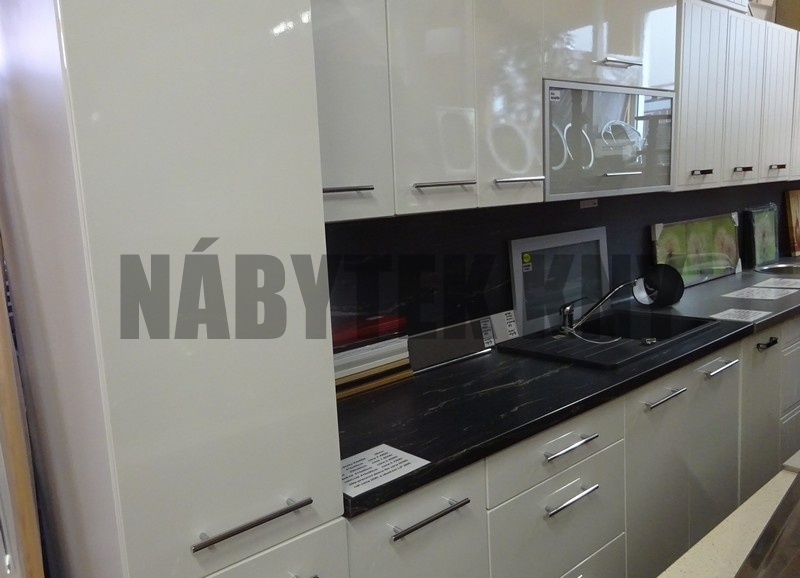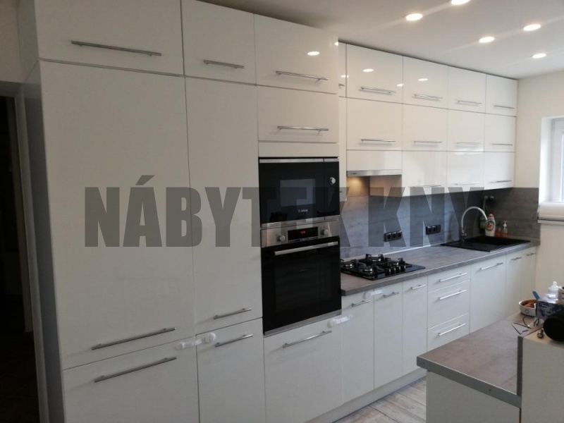 vzorová kuchyně, dvířkovina MDF lesk, korpus skříňěk bílý, kování BLUM, uchyt kovový, cena kuchyně podle počtu skříněk