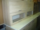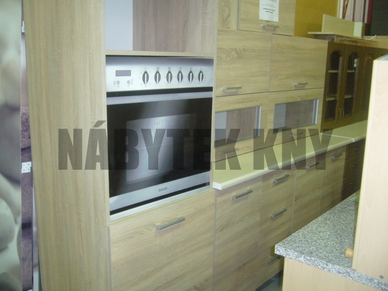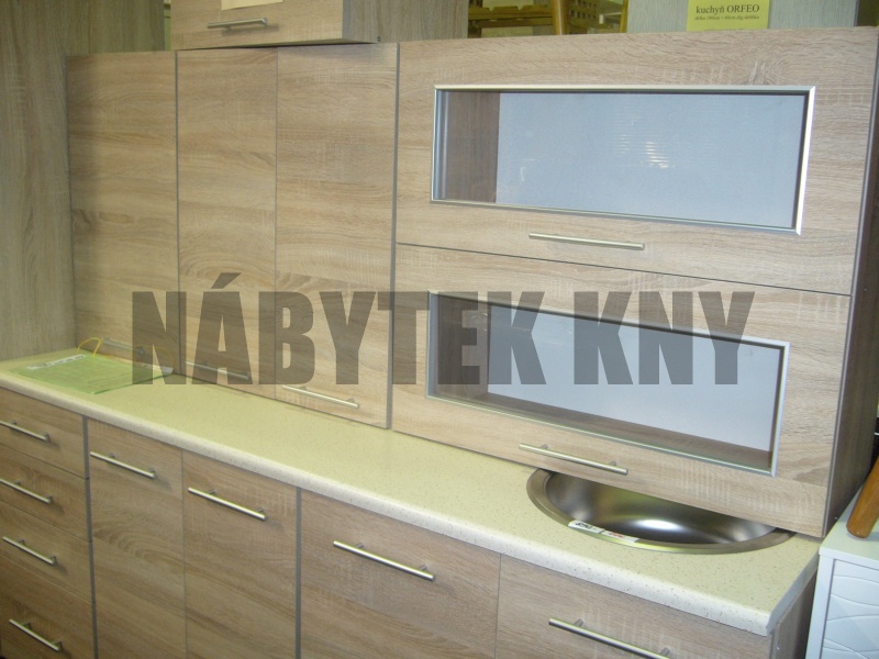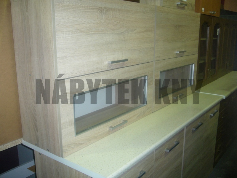 barva dub sonoma, moderní kuchyně s výklopy, délka 160cm + 60cm dig. skříňka = 220cm, výška horních skříněk 72cm, výška spod.skříněk s deskou 85cm, v ceně je pracovní deska, v ceně není dřez, kuchyně je v balíku, nedostupná