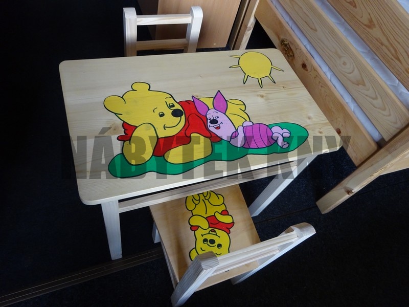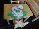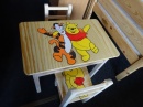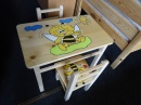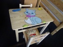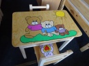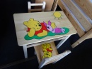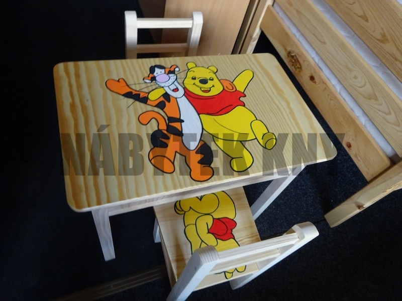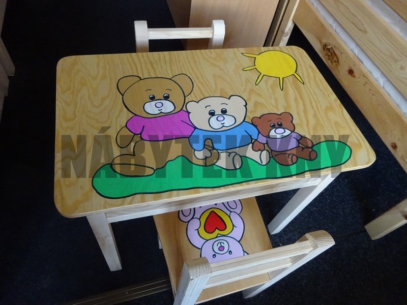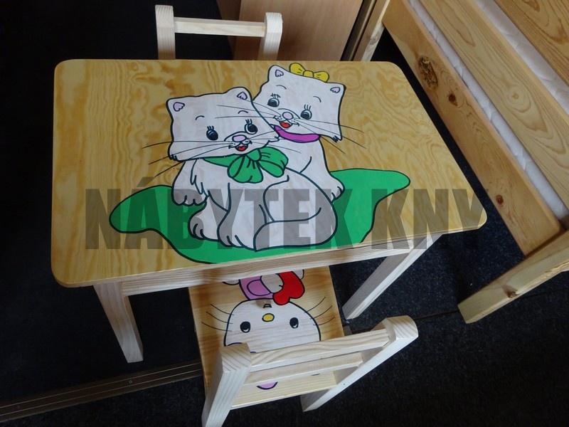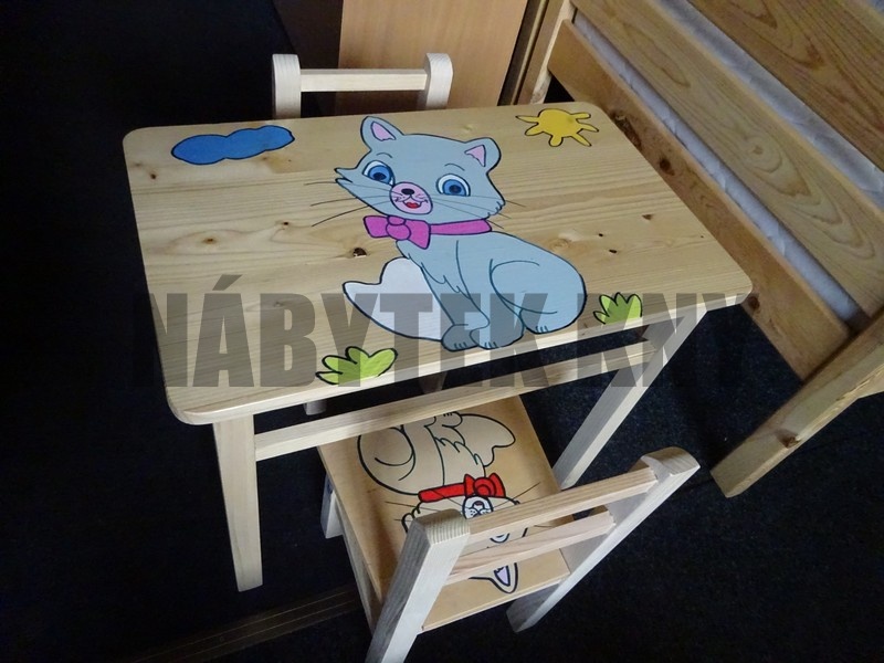 materiál borovice, lakovaná, v ceně je stolek a 2židličky s polstrem, rozměry stolku: 51x40x47,5cm, rozměry židličky: 56x27x45cm, výška sedu 24cm, vyprodaný