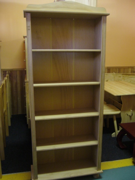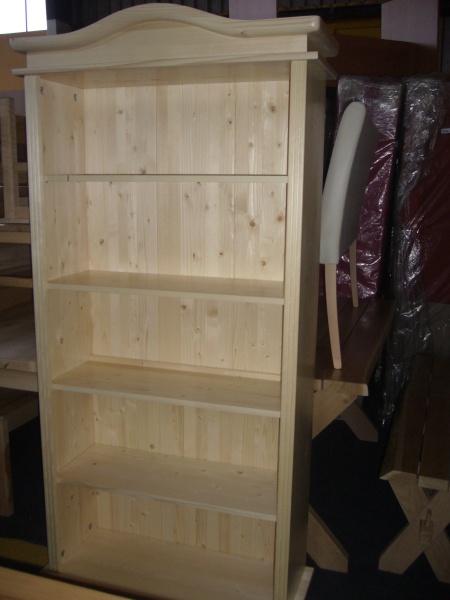 pevná knihovna, materiál borovice, lakovaná, zboží je ve smontovaném stavu, vlastní výroba, můžeme vyrobit jakýkoliv rozměr