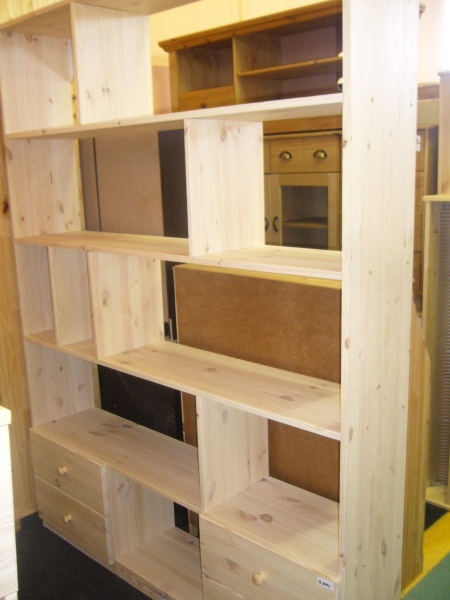 pevná knihovna, materiál borovice, lakovaná, zboží je ve smotovaném stavu, vlastní výroba, můžeme vyrobit jakýkoliv rozměr