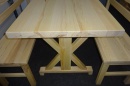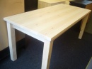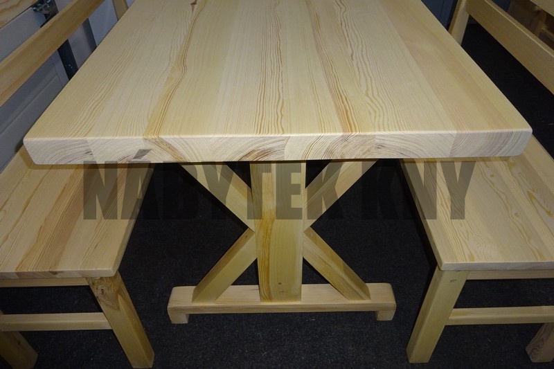 materiál borovice, nelakovaná na přání zákazníka, horní deska 4cm, nohy 8x8cm, vlastní výroba, vyrobíme jakýkoliv rozměr, na zakázku