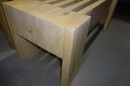 materiál dub, celomasiv, spárovka pruběžná, tl. horní desky 4cm, noha 8x8cm, SKLADEM