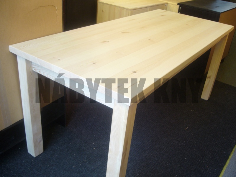 materiál borovice,  na přání zákazníka nelakovaná, tl. horní desky 37mm, noha 8x8cm, na přání vyrobíme jakýkoliv rozměr , na zakázku