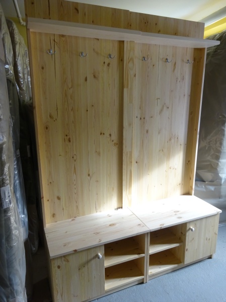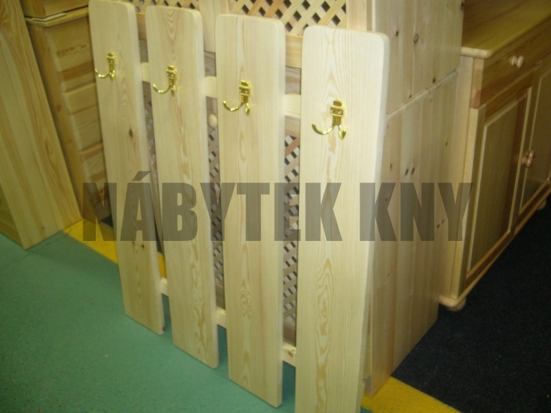 v ceně jsou háčky, materiál borovice, lakovaná, zboží dodáváme ve smontovaném stavu, vlastní výroba, můžeme vyrobit jakýkoliv rozměr