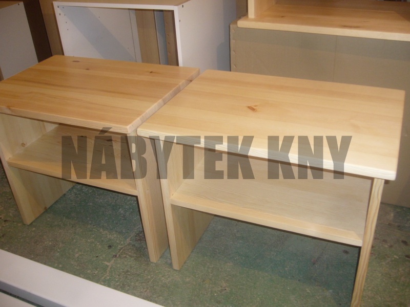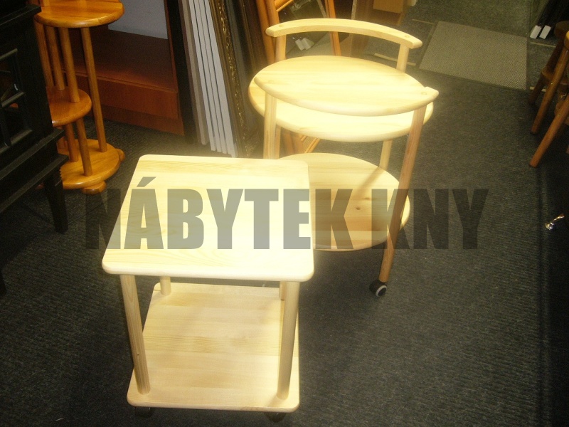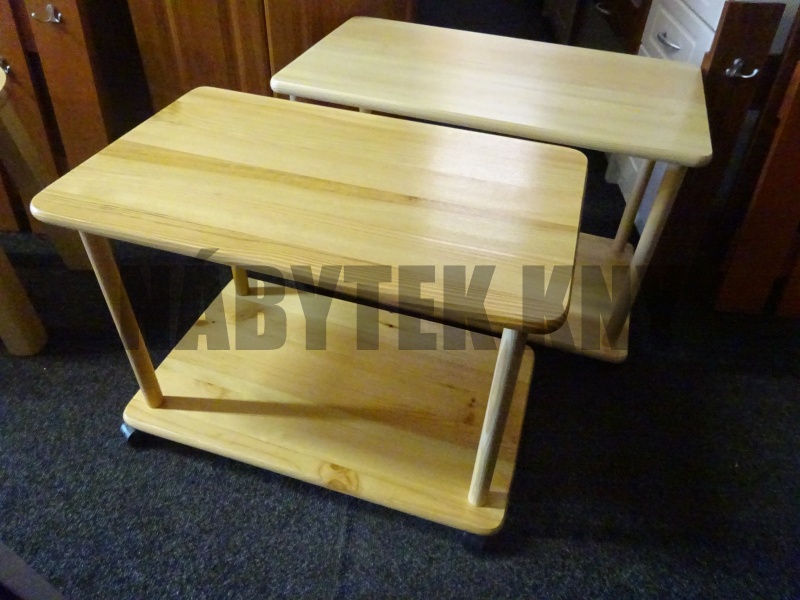materiál borovice, lakovaná, stolky jsou na kolečkách --> doprodej