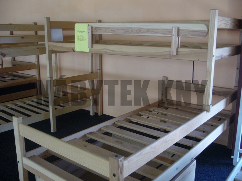 materiál borovice, lakovaná, spoje čep, v ceně je rošt, ceně nejsou matrace (200x90cm), na přání můžeme vyrobit i jiný rozměr, cena přistýlky pod palandu je 2.980Kč + cena palandy 8.790Kč