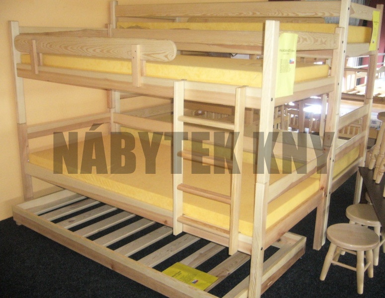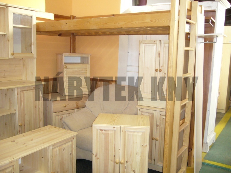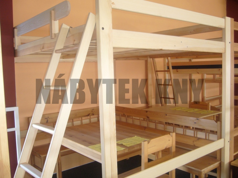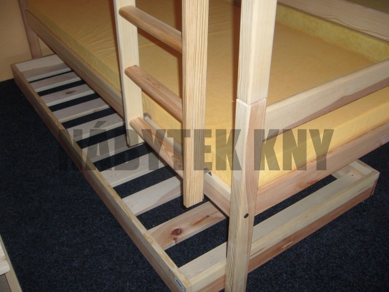 materiál borovice, povchová úprava vodou ředitelný lak, spoje čep, skladem v rozloženém stavu, v ceně je rošt, v ceně je žebříček, v ceně není matrace (90x200cm), vlastní výroba - na přání vyrobíme jakýkoliv rozměr, skladem ihned k odběru