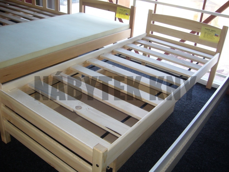 pevné vhodné do penzionu nebo na ubytovnu, materiál borovic, lakovaná, v ceně pevný rošt v rámu, cena kus 2.890Kč
