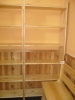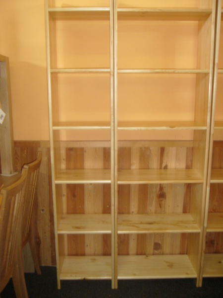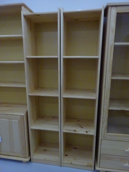 materiál borovice, lakovaná, zboží je v balíku, malý uzký regál vyprodaný