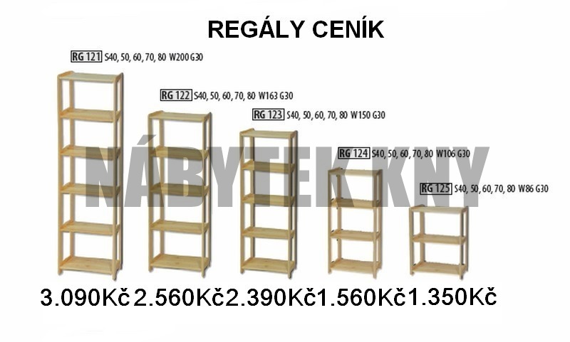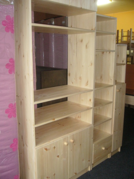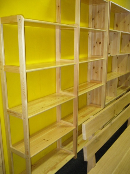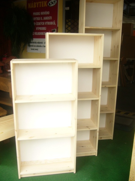 výběr rozměrů, materiál borovice, lakovaná, regály dodáváme v rozloženém stavu v demontu, snadný odvoz, skladem