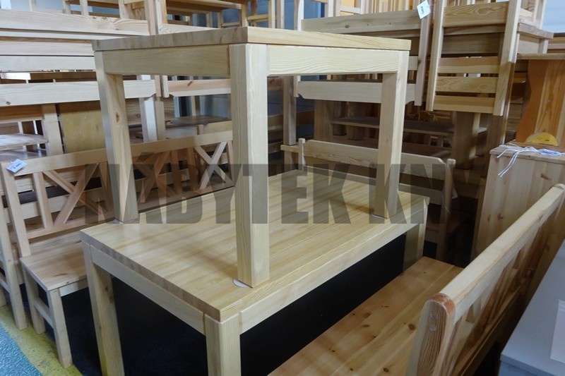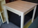 materiál borovice, lakovaná, tl. 4cm, noha 8x8cm, výška stolu 75cm, lub 8cm, mezera pod stoleme 62cm, demont, skladem