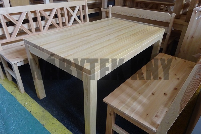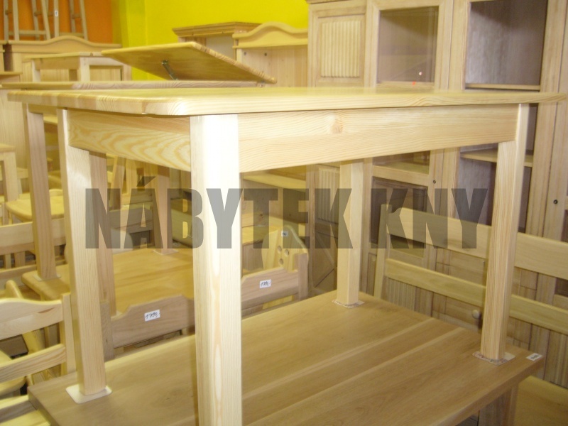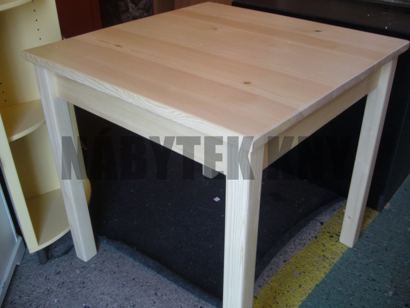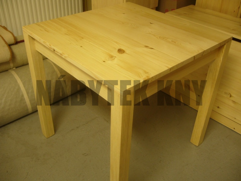 borovice, lakovaná, noha 6x6cm, tl. 2cm, výška stolu 75cm, lub 9cm, mezera pod stolem 66cm, skladem ihned k odběru
