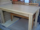 materiál dub, lakovaný, tl. horní desky 4cm, nohy 8x8cm, vlastní výroba, můžeme vyrobit jakýkoliv rozměr