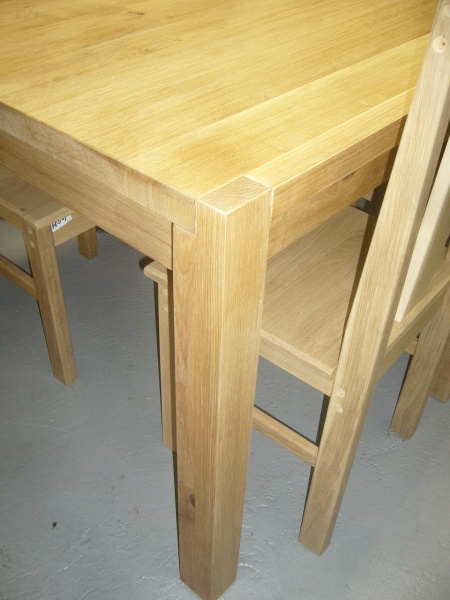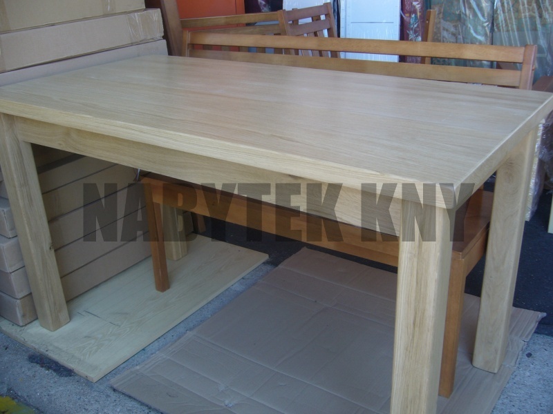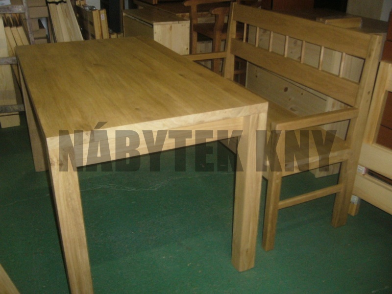 materiál dub, lakovaný, nohy 10x10cm, stůl 90x200cm cena 25.990Kč, v ceně není lavice a židle