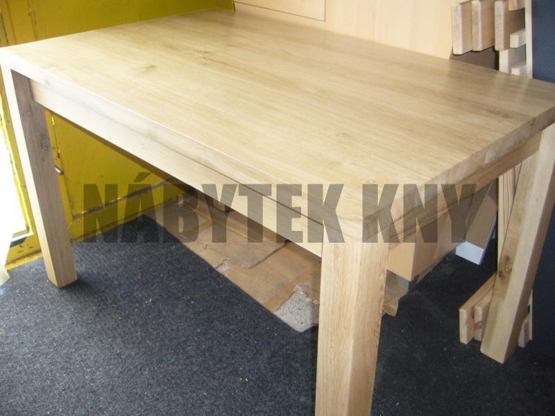 materiál dub, lakovaný, tl. 4cm, nohy 8x8cm, vlastní výroba, můžeme vyrobit jakýkoliv rozměr