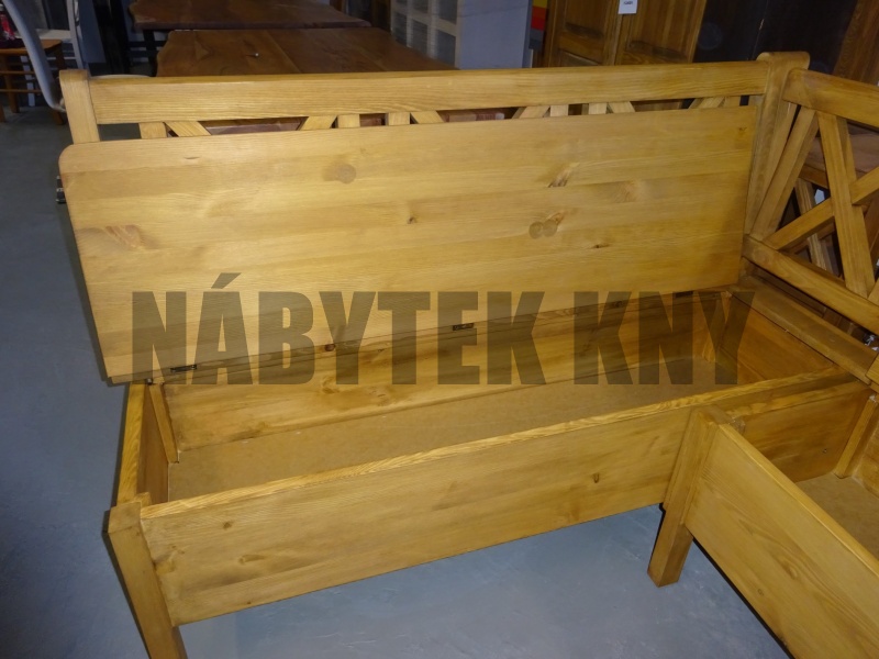 materiál borovice, povrchová úprava voskování, rozměry: 210x150cm, výška sedu 45cm, úložný prostor, SKLADEM levá i pravá
