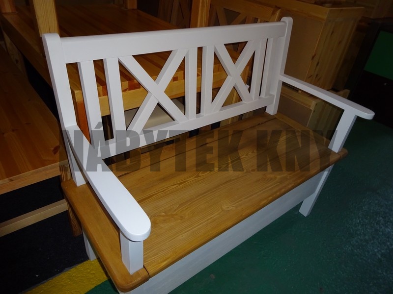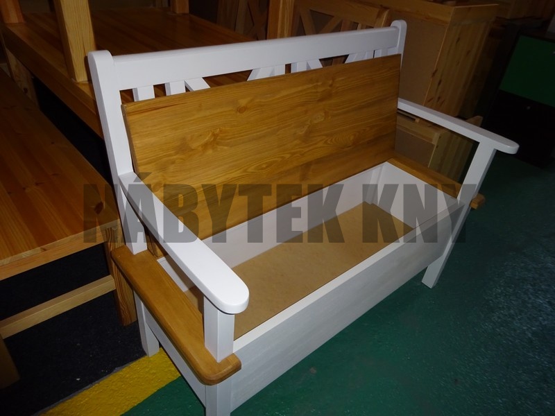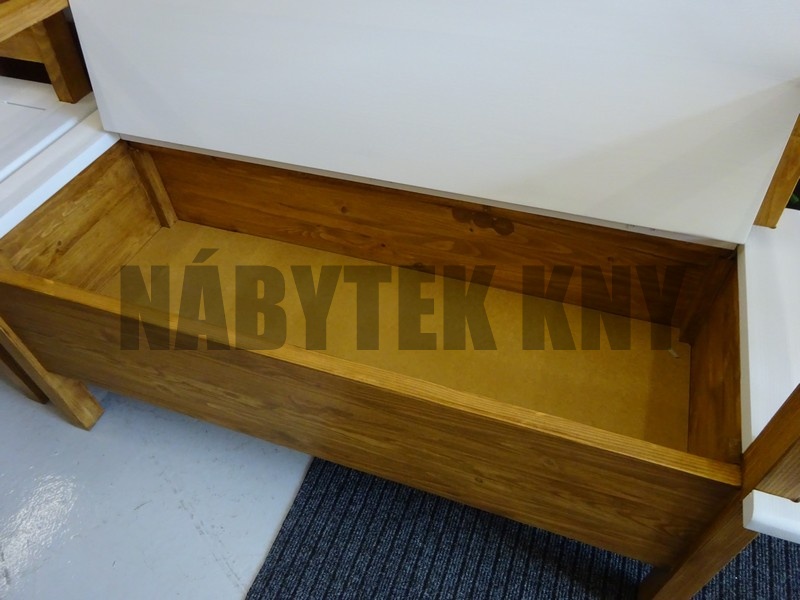 materiál borovice, povrchová úprava voskování, výška sedu 45cm, úložný prostor 22,5cm