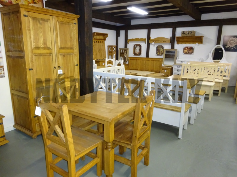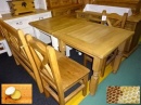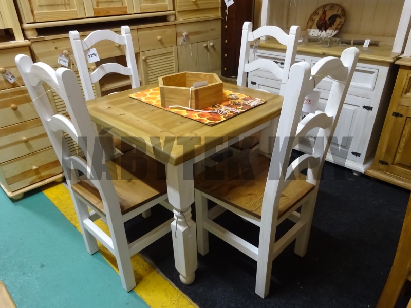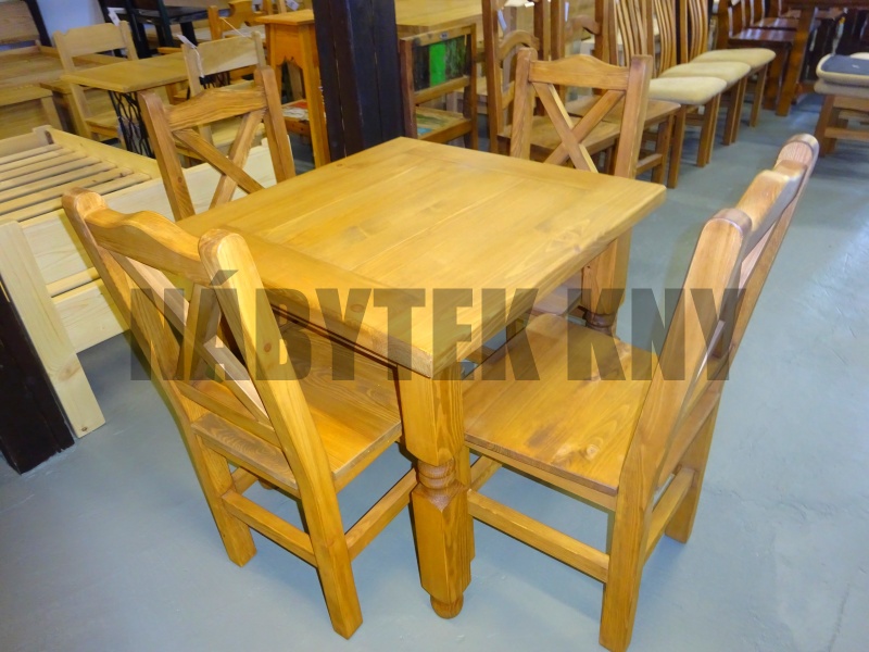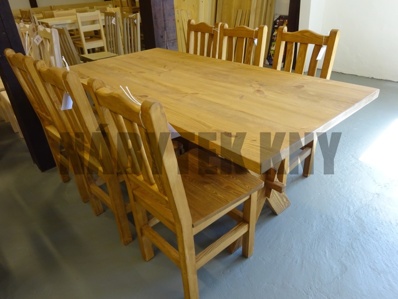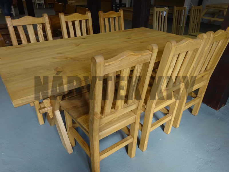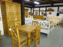 materiál borovice, povrchová úprava voskování, cena stolu 13.790Kč, židle cena kus 2.990Kč SKLADEM