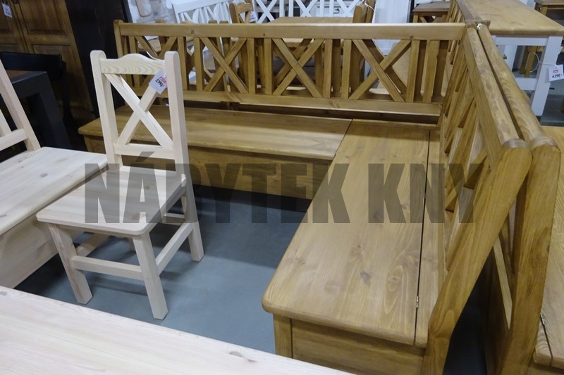 masiv voskovaný, roh 210x150cm, uložný prostor 22,5cm, lavice není univerzální, levé nebo pravé provedení, SKLADEM