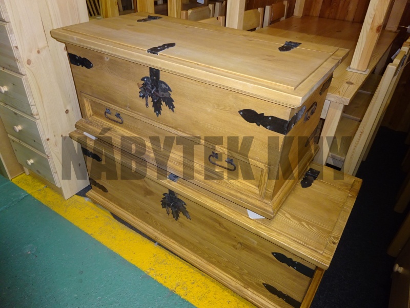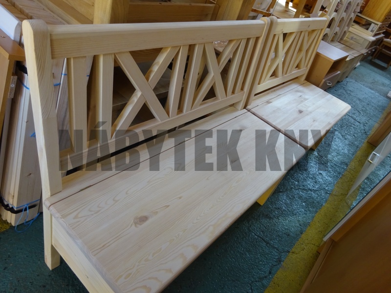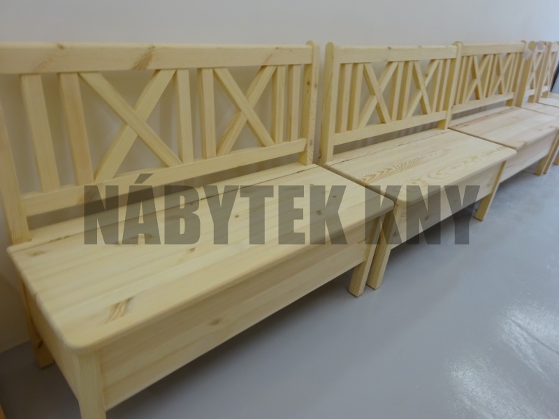 materiál borovice, přírodní nelakovaná, uložný prostor, výška sedu 45cm, skladem