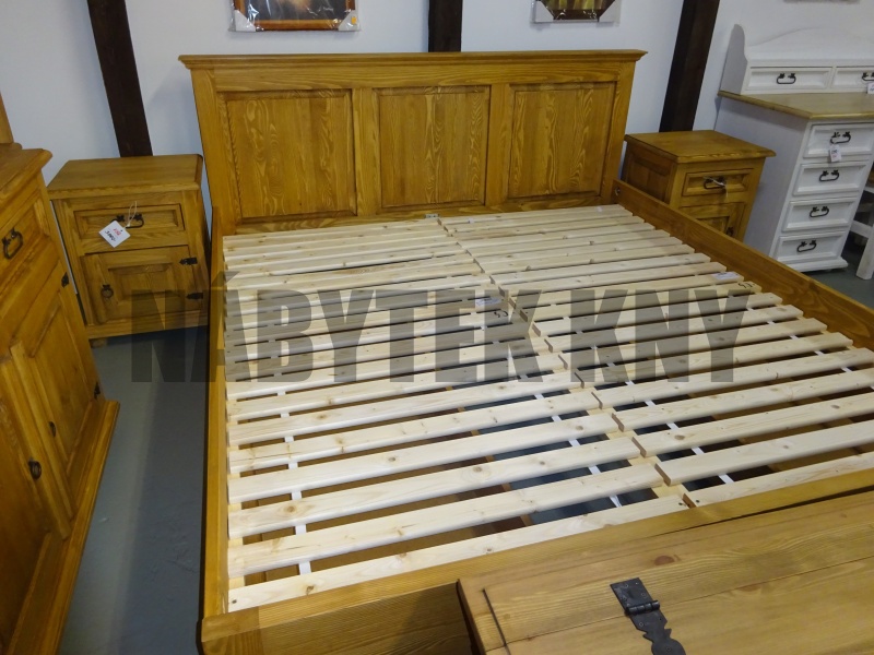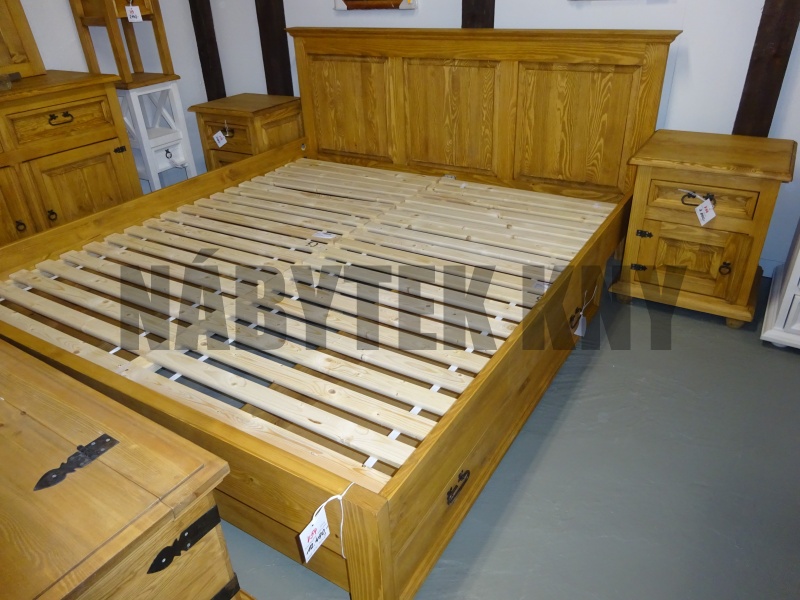masiv voskovaný, čelo tl4cm, boky 2,5cm, výška čela 97cm,, 2rozměry: postel 200x180cm cena 16.690Kč nebo postel 200x200cm cena 18.710Kč, rošt akce 200x90cm kus 490Kč, šuplík V55 150cm kus 2.490Kč, šuplík V55 kus 198cm cena 2.990Kč
