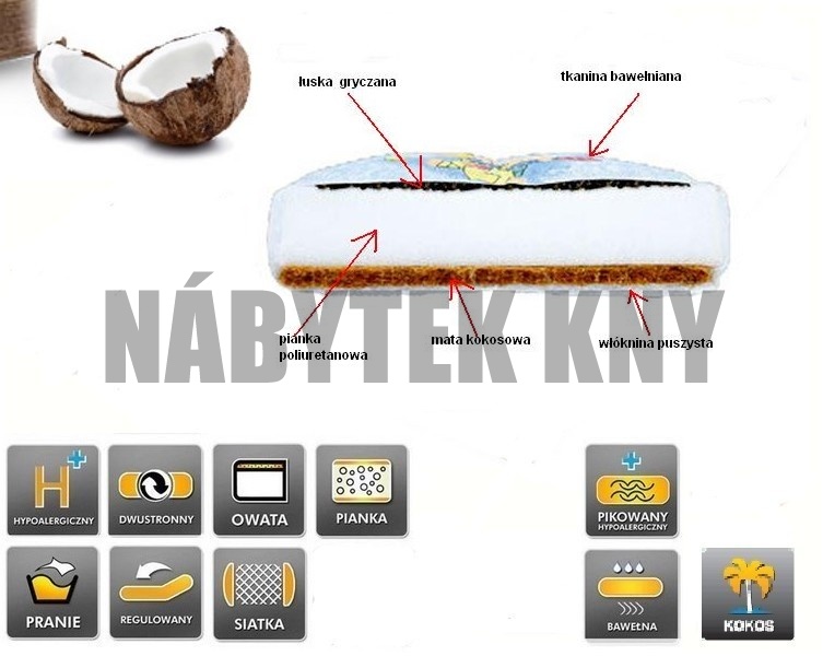 oblíbená matrace je oboustraná, z jedné strany matrace měkká pěna PUR a z druhé strany tvrdší spací zona vložená kokosová deska, výška matrace 7cm, prací odepínací potah, polský ověřený výrobce, skladem ihned k odběru