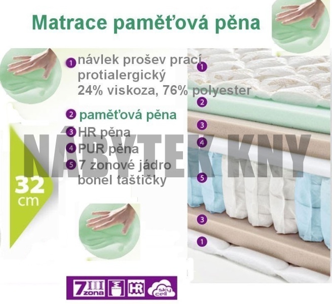 matrace VISCO, paměťová pěna VE a RP pěna, prací potah na zip, tvrdší nosnost do 120kg, SKLADEM 1ks