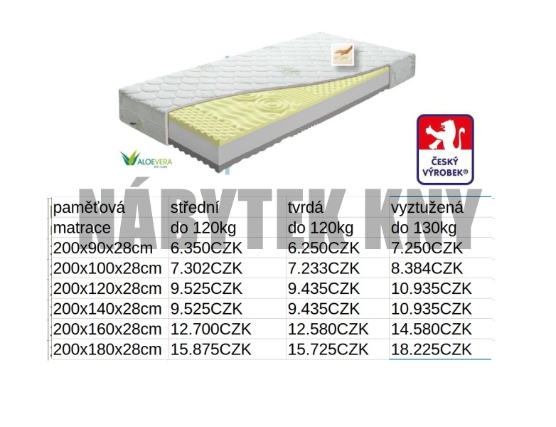 matrace je na prodejně k vyzkoušení, na objednání ve všech velikostech, matrace 200x80 nebo 90cm cena 8.990Kč