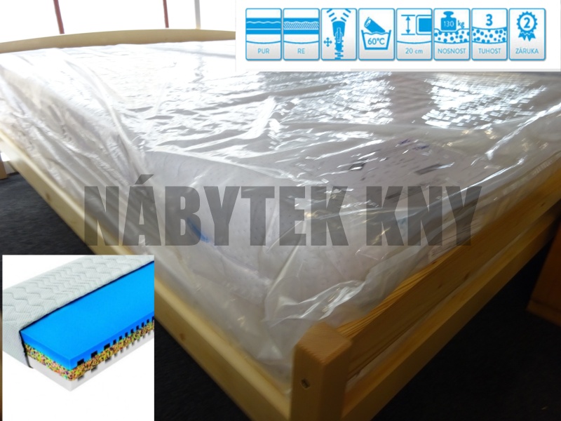 sendvičová matrace, PUR PĚNA/RE, výška matrace 21cm, nosnost do 130kg, tuhost 3, prací odepínací potah, český výrobce, původní cena 12.309Kč
