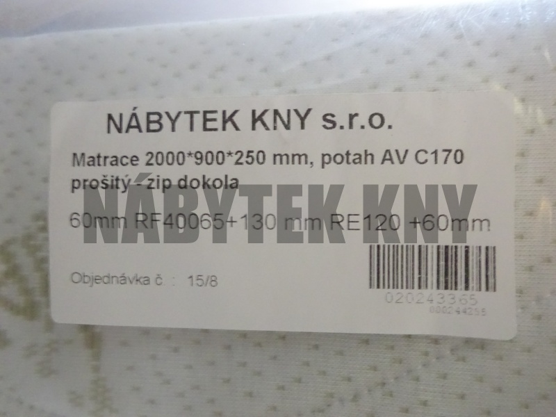 zesílená matrace do 160kg, výška 25cm, složená z pěn a vyztužená, hmotnost matrace 36kg, obal dokola na zip, obal matrace aloe vera, český výrobce