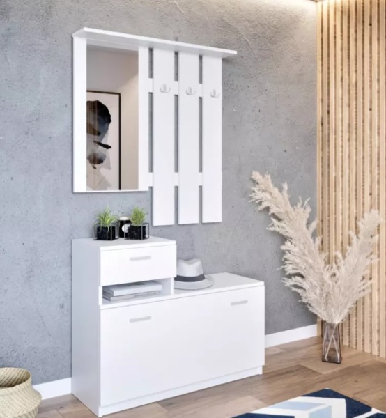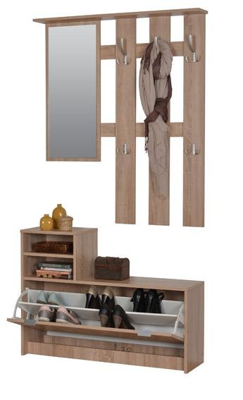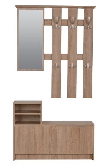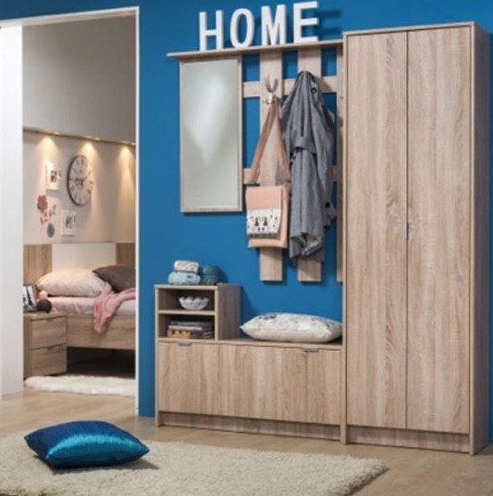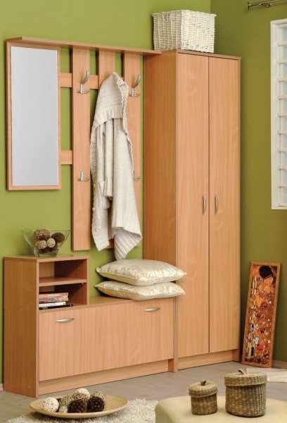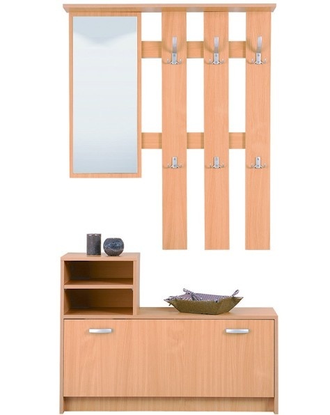barva buk, v ceně je skříň se 4 policemi, zrcadlo, věšák a botník s poličkou, nedostupná