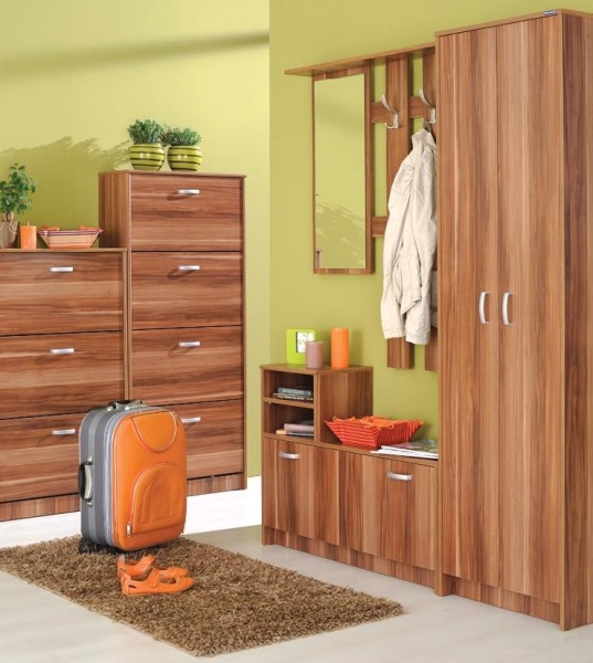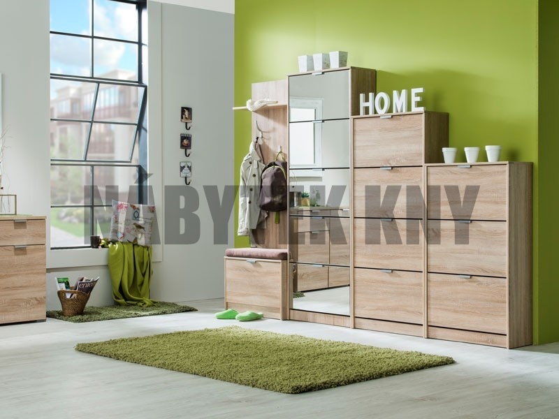 barva hawana, v ceně je malý a střední výklopný botník, zrcadlo, věšáková stěna a botníková skříň se 4 policemi, zboží je v balíku, doprodej jen skříně