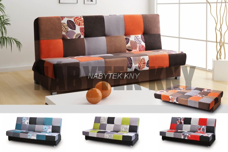 rozkládací sedačka s úložným prostorem,  rozměry sedačky: 193x90x85cm, rozměry lůžka: 193x122cm, ve 4 barvách: orange, blue, green a red doprodej
