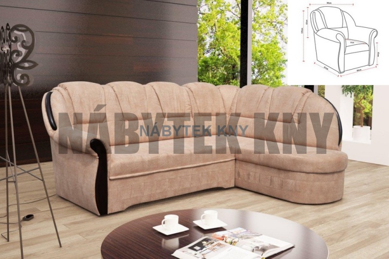 univerzální levá/pravá, oblíbená sedačka, rozkládací roh s úložným prostorem, štelovací podhlavníky 70-90cm, rozměry sedačky: 260x186x82cm, rozměry lůžka: 208x124cm,  SKLADEM