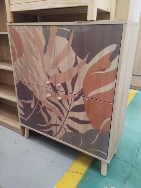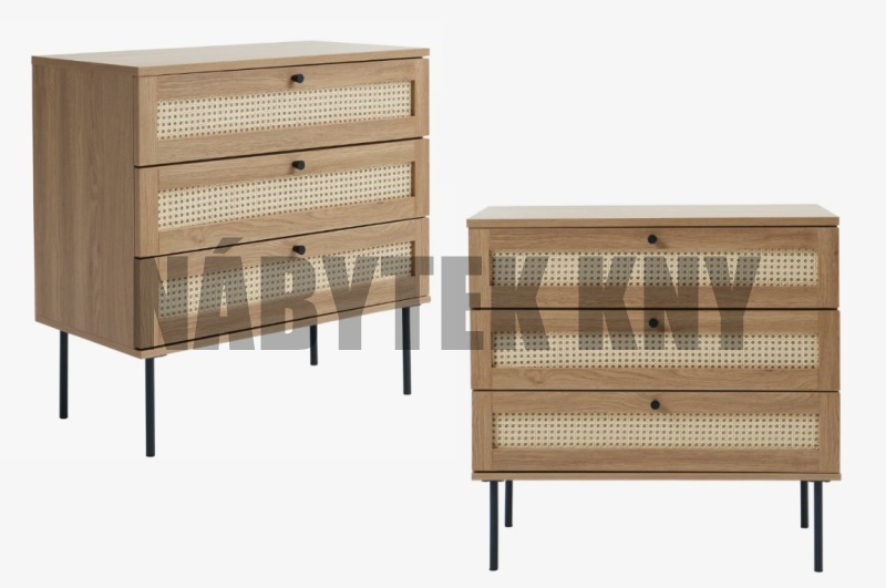 výplet na šuplíkách, dekor dub MDF, rozbaleno, poskládáno, zboží je ve II. jakosti, dovoz Německo