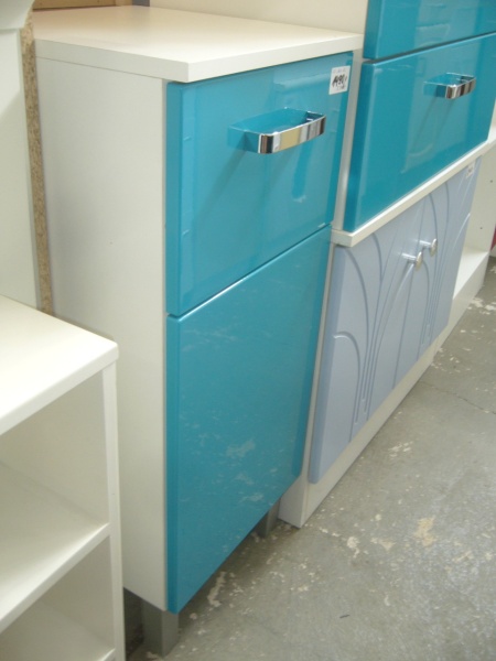 v ceně je skříňka bez umyvadla, zásuvka s kuličkovým plnovýsuvem dotahem a tlumení, zboží je ve II. jakosti, dovoz Německo, prodáno