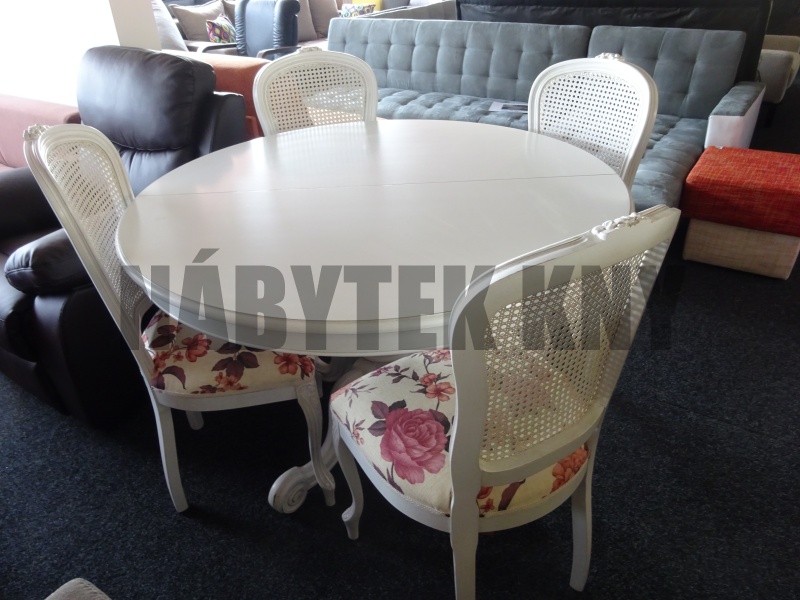 v ceně kulatý rozkládací stůl z masivu + 4 křesílko, zboží je ve II. jakosti, dovoz německo, původní cena 36.000Kč