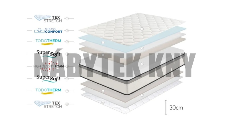 výška 30cm, 12zon, stědně trvdá pěnová do 120kg, oboustranná antialergická matrace, termoregulační, studená pěna HP a pamětová pěna, HD pěna, váha 14,5kg, PC 13.599Kč poškozený igelit obal z dopravy, vytrnutá nit