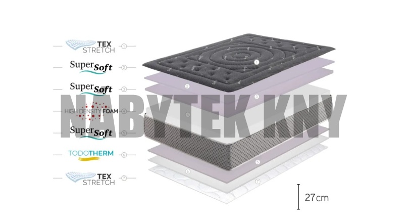 výška 27cm, středně tvrdá/ na druhé straně extra tvrdá, pěnová, nosnost do 120kg, oboustranná, antialergická, zonová, ze studené pěny a z pamětové pěny a z HD pěny, váha 14,5kg, PC 13.399Kč nyní za 7.599Kč