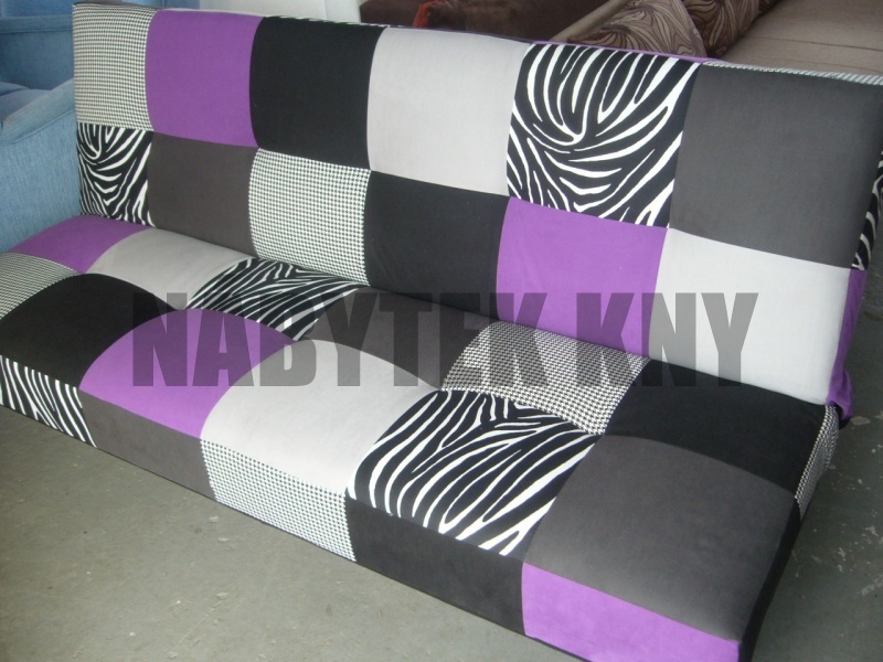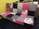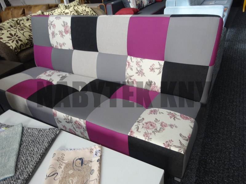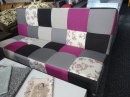 pohovka do malého bytu, rozkládací s úložným prostorem, barva fialová, patchwork, pohovka je na nerez nožičkách, rozměry pohovky: 195x90x85cm, lůžko: 195x120cm, SKLADEM