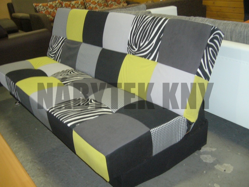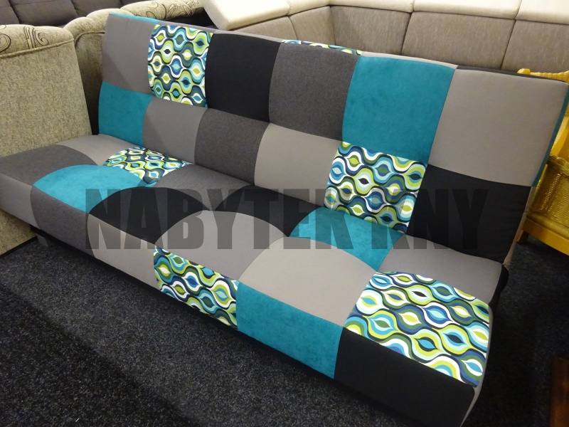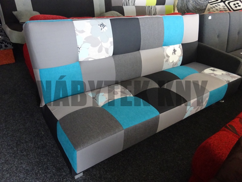 pohovka do malého bytu rozkládací s úložným prostorem, barva zelená, patchwork, pohovka je kovových nožičkách, rozměr pohovky:195x90x85cm, lůžko: 195x120cm, nedostupný