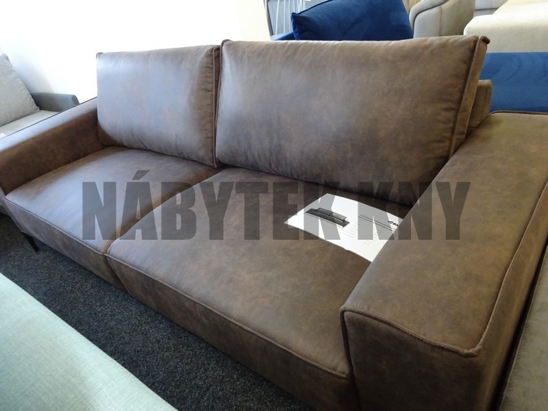 čokoládova hnědá sedačka, látka imitace kůže, délka 224cm, výška 85cm, hloubka 85cm, sed 45cm, zboží je ve Ii. jakosti, dovoz Německo, prodáno