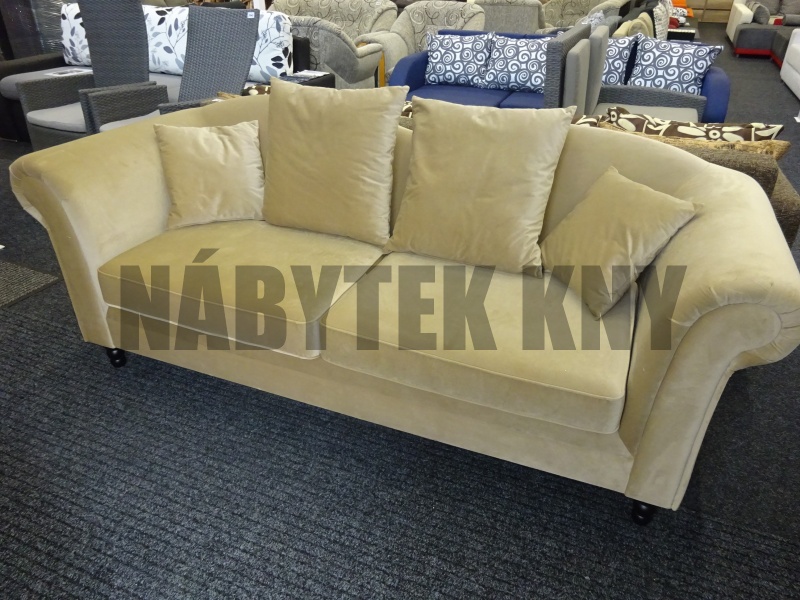 trojsedák nerozkládací, model retro na nožkách, v ceně jsou polštáře, rozměry sedačky: 187x87x84cm, výška sedu 50cm, zboží je ve II. jakosti, dovoz Německo, prodáno